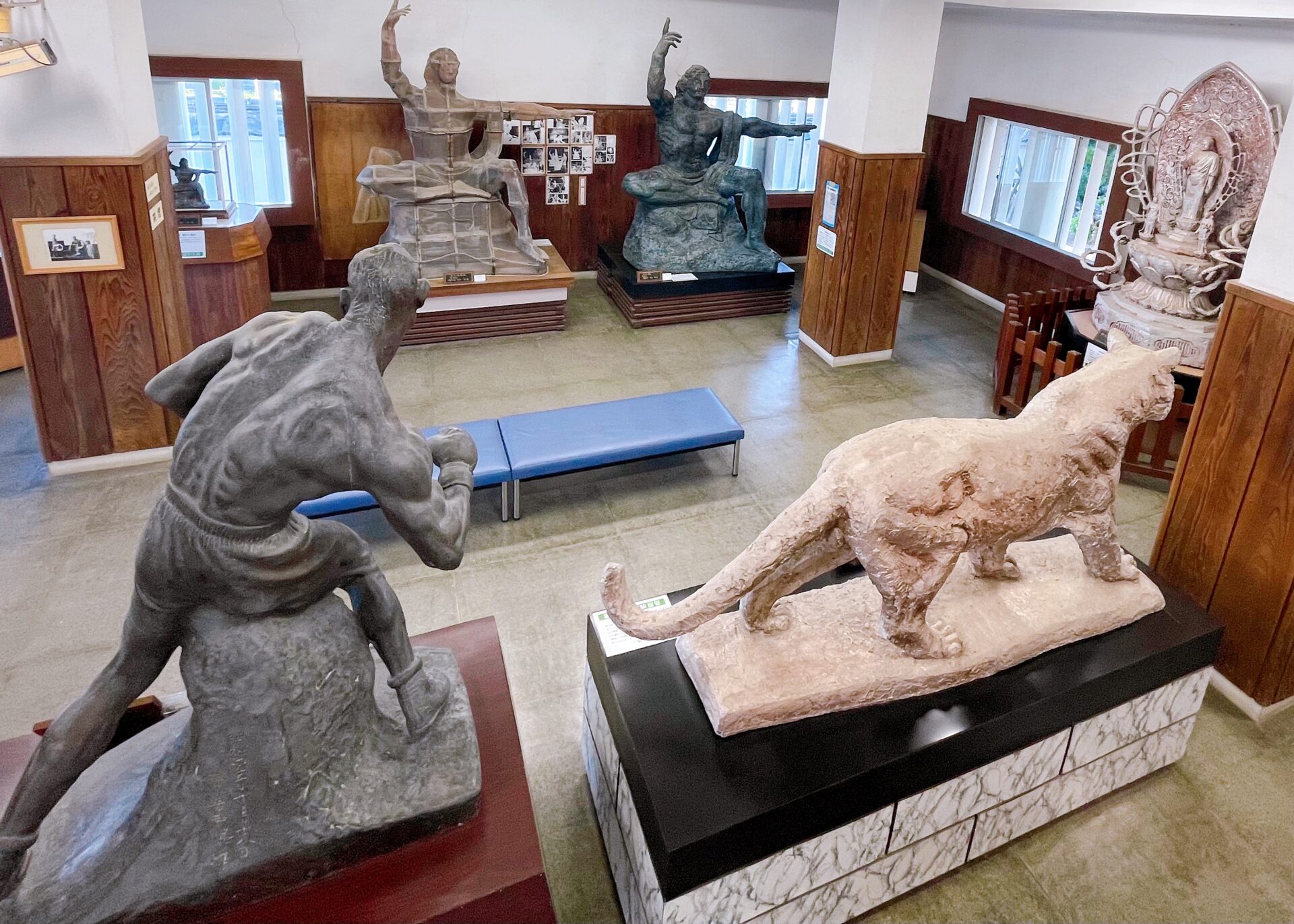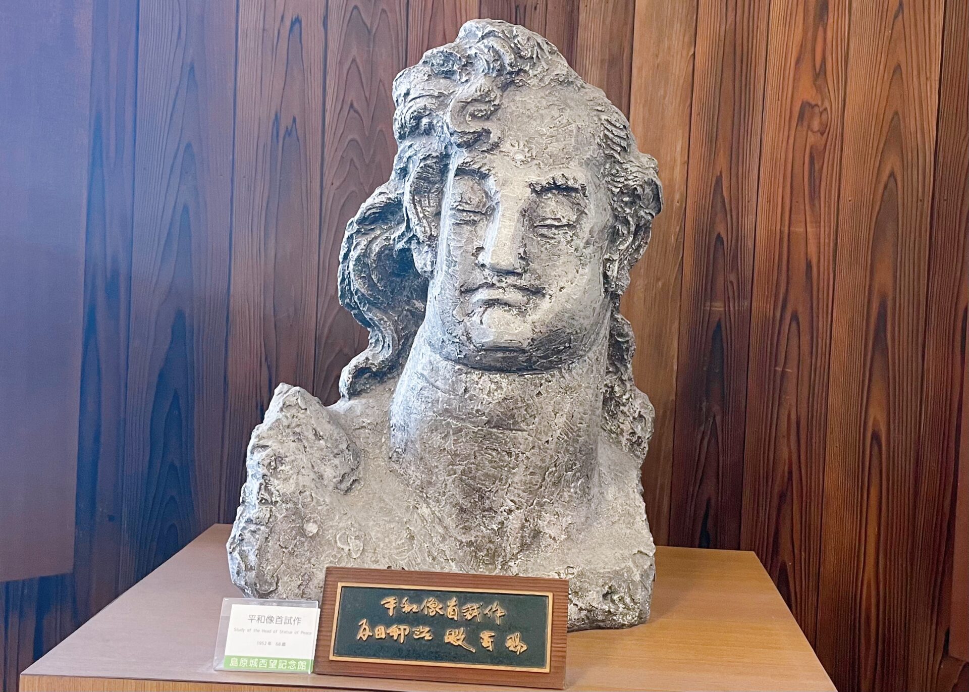 西望記念館は、1972年、《平和祈念像》の作者である日本彫刻美術界の重鎮 北村西望の米寿を記念して開館されたミュージアムです。建物は、県指定史跡 島原城跡公園内にある巽の櫓を利用しており、館内には《平和祈念像》の最初の雛形や、島原半島の生家にて才能を評価されるきっかけとなった最初期の作品 欄間《雲に龍》といった貴重な作品をはじめ、数多くの彫刻・書・絵画などが展示されています。また館外は、十八番の勇壮な男性像、後半生の大きなテーマとなる平和的な女性像など、様々な作品が展示される野外彫刻園となっており、公園散策と共に美術鑑賞を楽しむことができます。