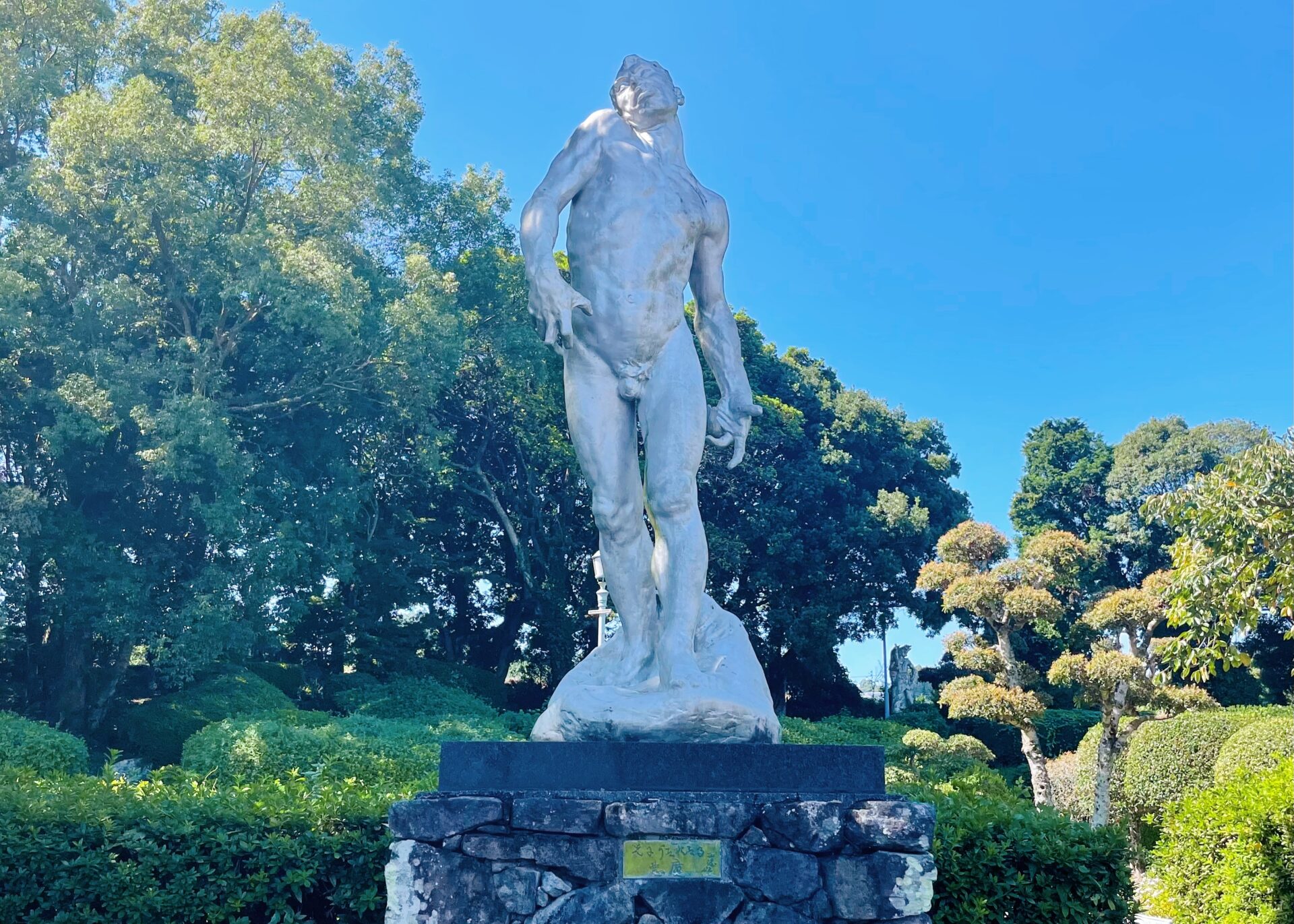 西望公園・西望記念館は、南島原市南有馬町出身で、《平和祈念像》で有名な日本彫刻界の重鎮 北村西望の功績を記念して、生誕地に開設された彫刻ミュージアムです。北村西望の生家を復元した木造建築の記念館内には、西望芸術の足跡を辿る彫刻・書・絵画など、約60点の作品が展示されています。庭園内には、1/4スケールの《平和祈念像》、文展彫刻作家としての地位を確立した《光にうたれる悪魔》、我が子の愛らしさをモチーフにした《将軍の孫》などの彫刻13点が展示されています。また庭園からは、島原・天草一揆の舞台 原城跡を一望でき、幕府軍の布陣を俯瞰することができます。