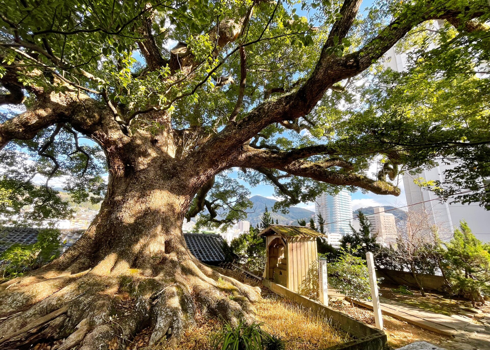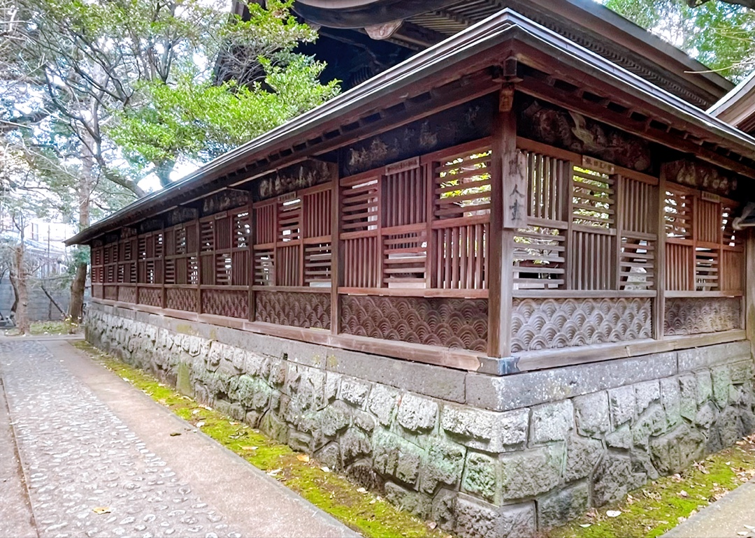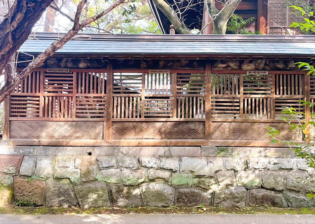 1625年創建、長崎三社の一つで、学問の神様 菅原道真公を祀る松森天満宮。本殿外囲いの欄間には、江戸時代の鍛冶職人、菓子職人、船大工などの30種の職人の仕事を精緻に表す長崎県指定文化財「職人尽」が浮彫りされています。この職人尽は、精緻な彫刻もさることながら、出島御用絵師 川原慶賀の師匠である石崎融思に彩色された歴史もある文化価値の高い美術品です。また境内には樹齢千年以上と言われるクスノキ、天満宮ならではの紅梅・白梅、鶏の放し飼いも見られるなど、神社参拝、美術鑑賞とともに自然に親しめる神域となっています。