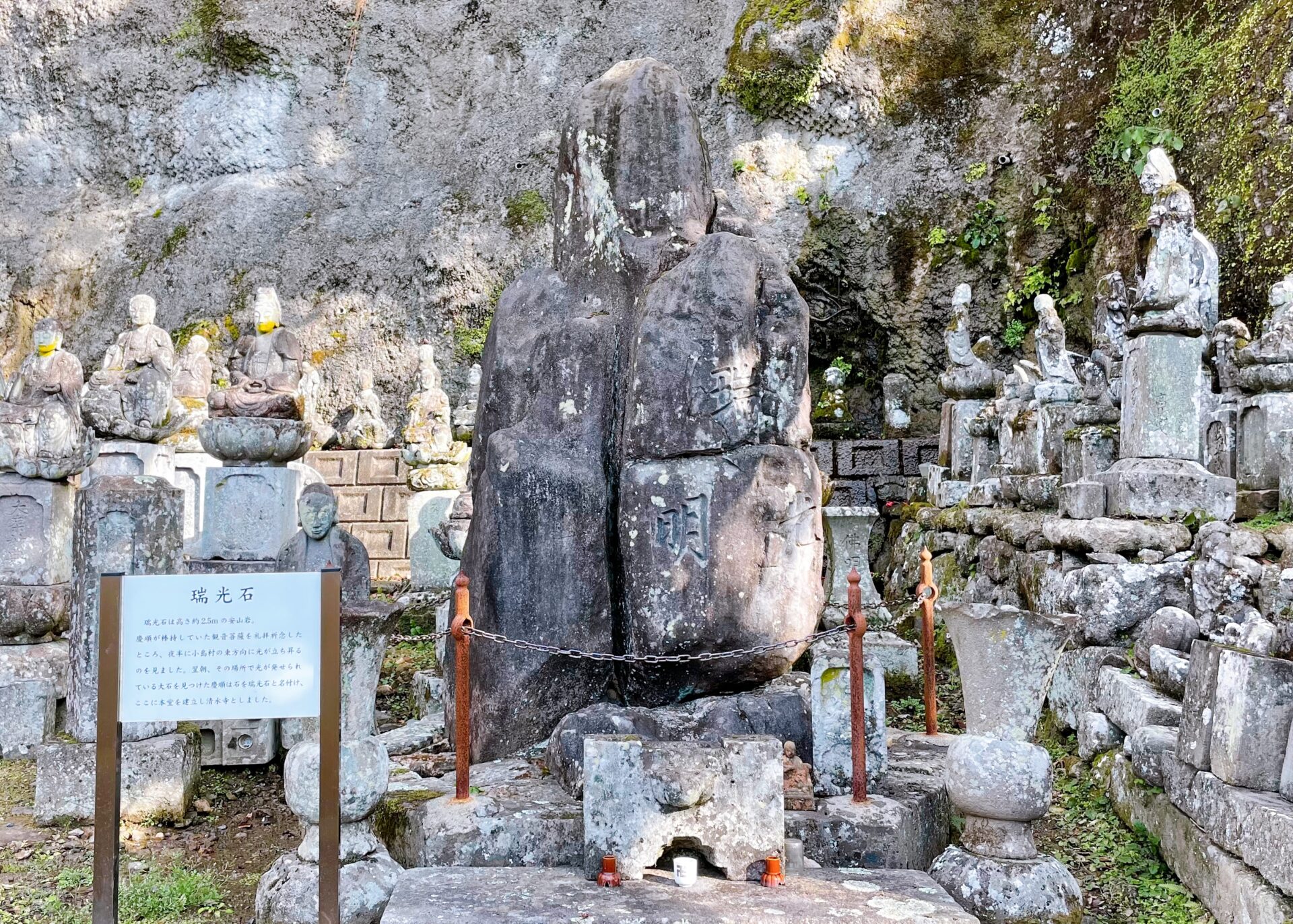 清水寺は、1623年、京都清水寺の僧侶 慶順によって檀家を持たない祈願寺として創建されました。ご本尊である千手観音に寺院建立を祈願すると、東の方角に、後に瑞光石と名付ける光り輝く大石を見つけ、建立の地を定めました。「瑞光明」と刻まれたこの大石は、現在も本堂裏に残されています。境内では、国指定重要文化財の本堂、長崎の女傑 大浦慶も熱心に参拝した聖天堂、石造りの清水の舞台、唐船つなぎ石を用いた石灯籠、四国八十八カ所巡礼路を模した石仏など、多くのスポットを巡ることができます。春には、樹齢100年を超えたソメイヨシノの一本桜が咲き誇ります。