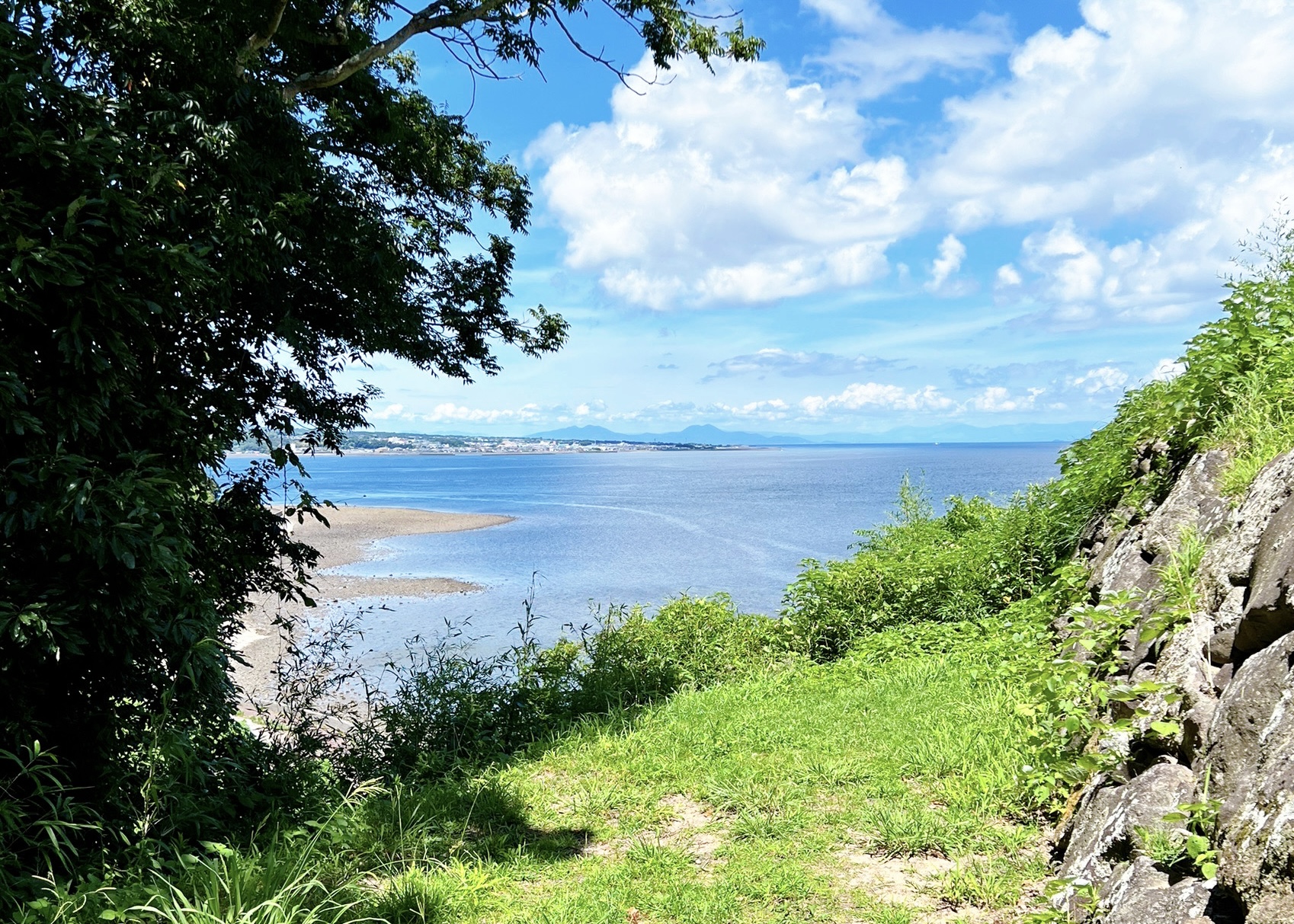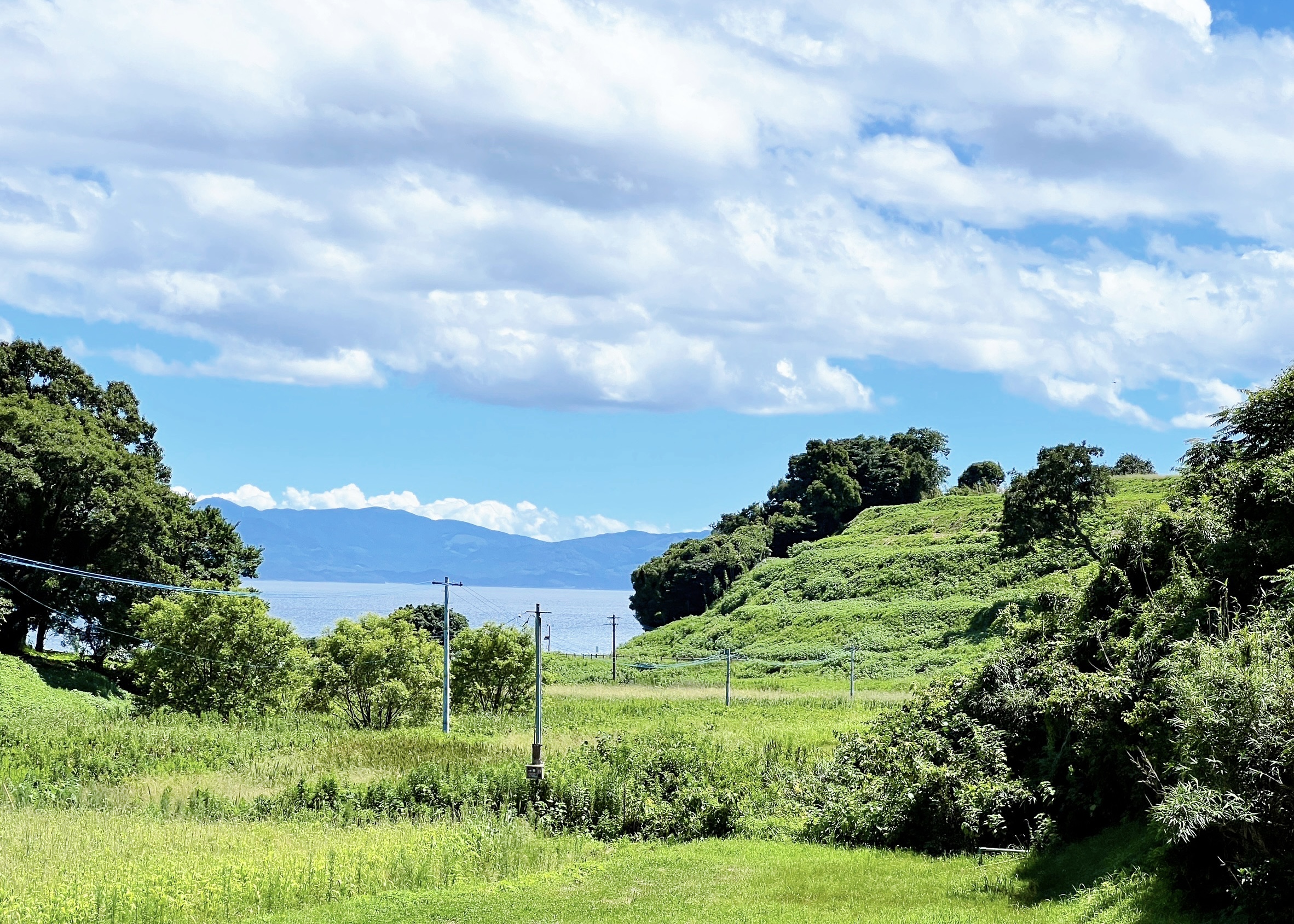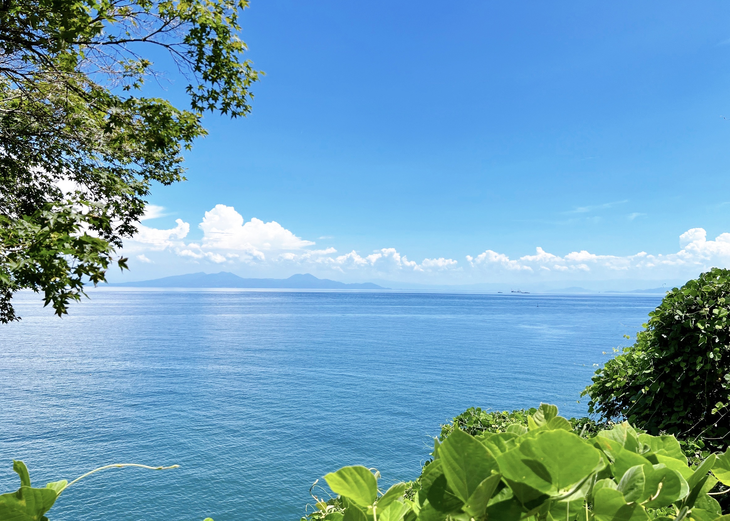 国道251号沿いを島原駅から諫早方面に進み、マクドナルドを右手に曲がると見える猛島海岸。自転車で道を下った先の踏切とまっすぐ伸びる道、前方に広がる海は、さながら映画のワンシーンに迷い込んだような気持ちにさせてくれる。真夏の海辺は、思っているよりも涼しくはない。海からの湿度の高い熱気と砂浜の照り返しが、鼓膜を突き刺すように夏を叫んでいる。嫌になるほどの暑さだが、海の輝きと入道雲の美しさに魅せられて、また来たいと思わせてくれる、そんな場所だ。時間にもよるが海岸沿いの道には釣りをしている人がいる。どうやらシーバスやメバル、チヌなんかが釣れるらしい。釣り目的で行くのもありかもしれない。
