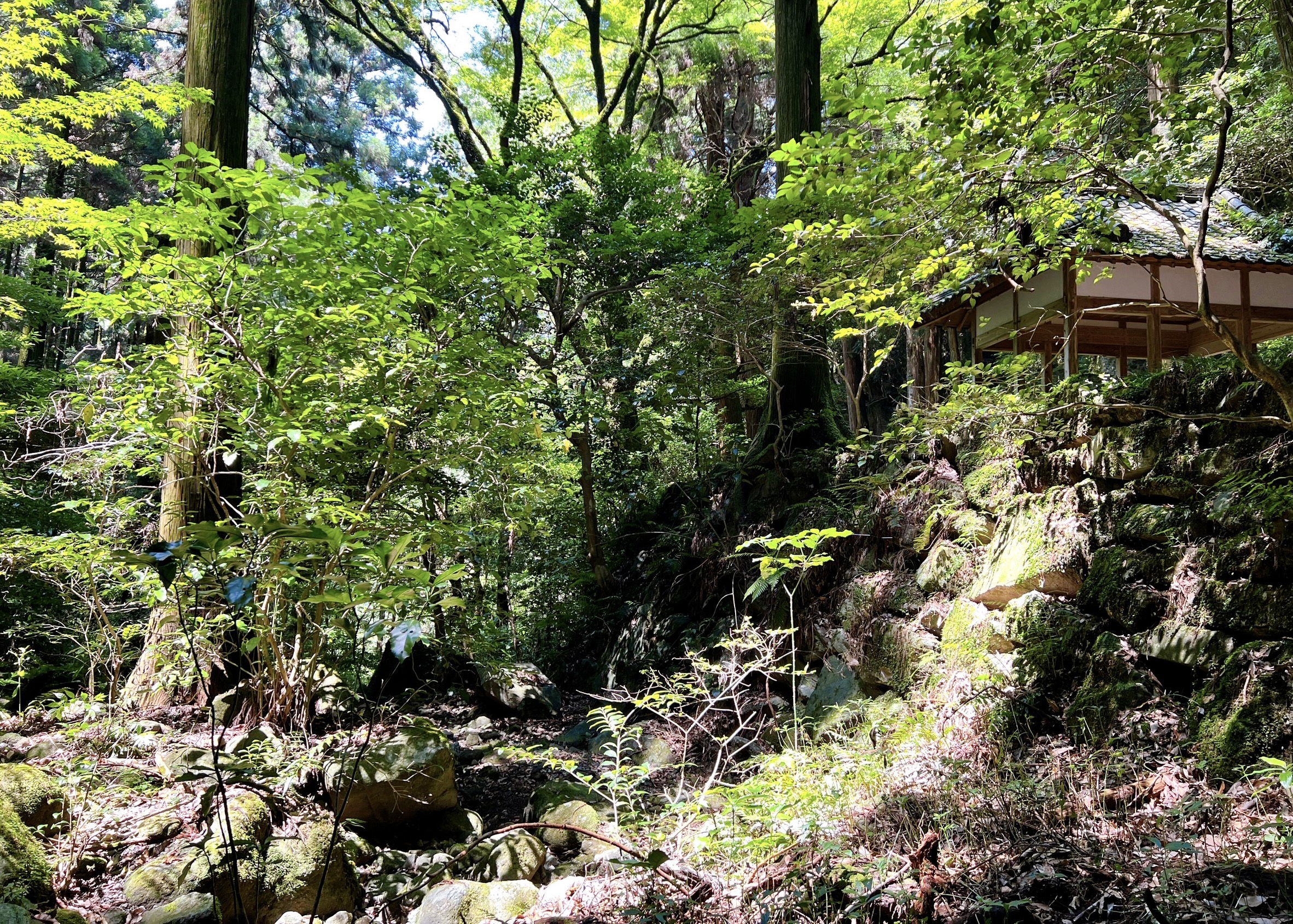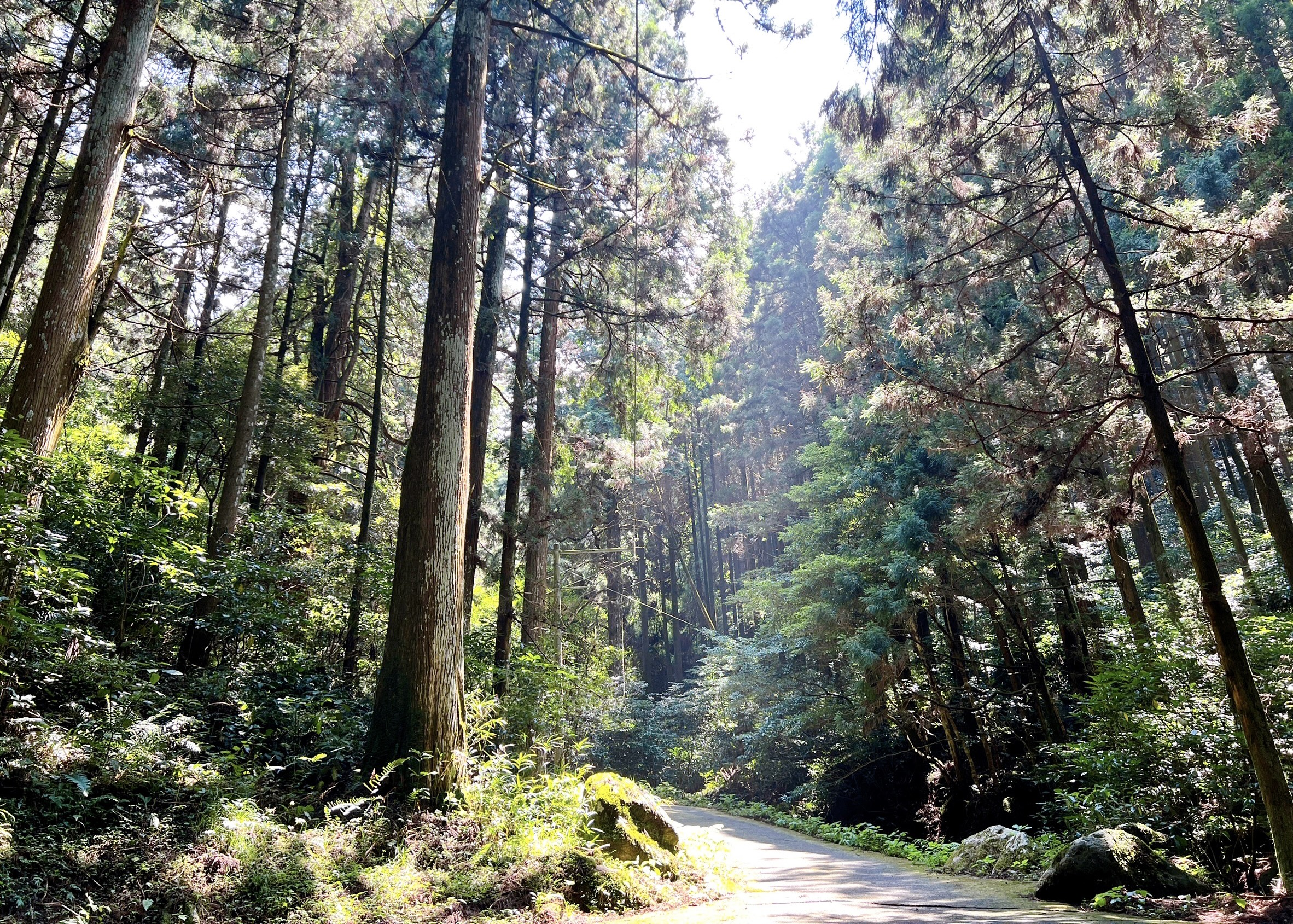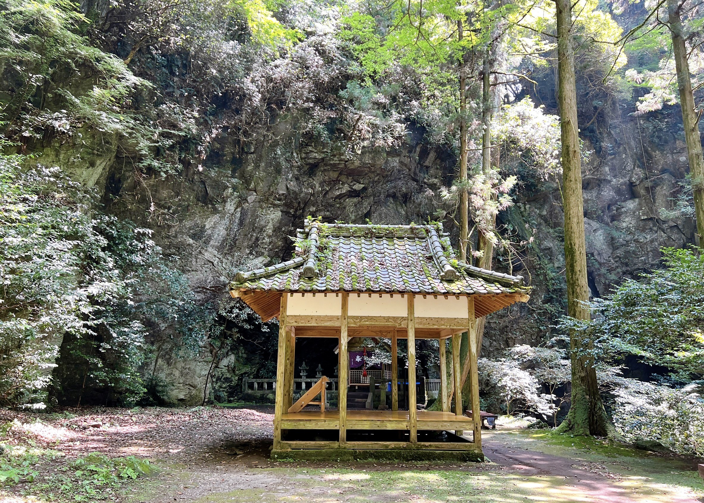 まず、神社までの道中には、最近ではめったに見かけることのない段々畑を見ることできる。段々畑という希少性と、その圧倒的な美しさを是非生で見てほしい。さて、神社に着くとあたりはもう山中で、太く高い木々が参道を囲んでおり、言葉には言い表せない神聖さを感じさせる。この高い木々の間から降り注ぐ木漏れ日の幻想的な美しさと、近くを流れる川の影響もあって夏でも涼しいことから、神社までの道のりは短く楽だとは言いづらいが、楽しく歩くことができる。そうして見えてきた神殿は、岩肌と一体になるように存在し、神殿だけでなく、周辺一帯が力に溢れているようである。そして、その中に今、僕もいると感じさせてくれる。