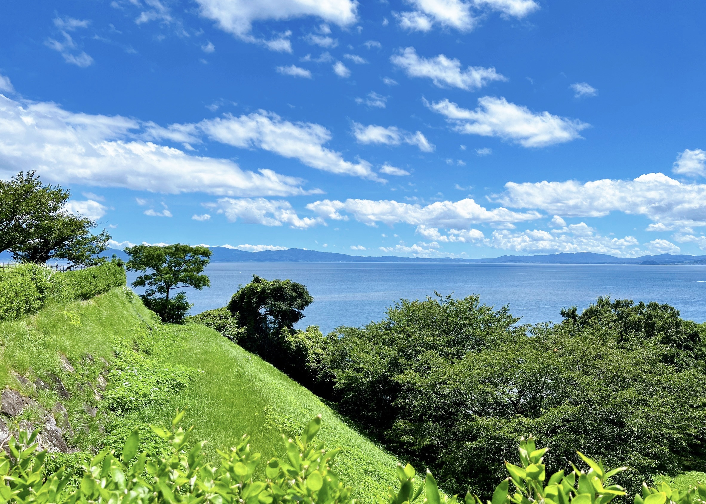 世界遺産にも認定された原城跡。海に面した広大な土地、一面の草原は歩いていて、とても心地いい気分にさせてくれる。城跡というだけあってここにどんな城があったのか、それは想像することしかできない。しかし、ところどころに見える城の基礎のような明らかに人工的に土が盛られている場所をみると、「あぁ、ここはかつて城だったんだな」と懐かしいような、寂しいような、それでいて少し高揚するような気持ちにさせてくれる。さて、僕が観光したときは、一周ぐるりと巡るのに1時間以上かかってしまった。夏場ともなると日傘をさしていても堪える暑さなので、熱中症対策をしっかりとしておいた方がいいだろう。